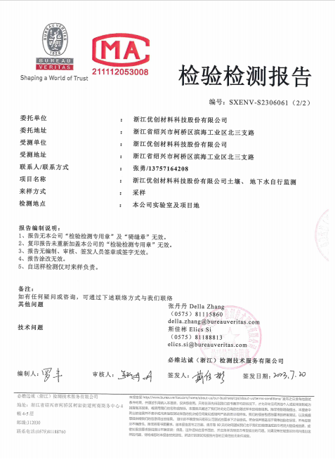 浙江優(yōu)創(chuàng)材料科技股份有限公司土壤、地下水自行監(jiān)測