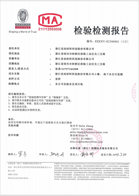 浙江優(yōu)創(chuàng)材料科技股份有限公司土壤、地下水自行監(jiān)測